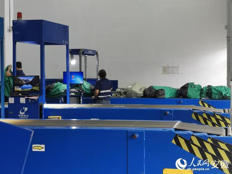 上午11时,六安市金寨县寄递公共配送中心已过了晨间最忙碌的时候。